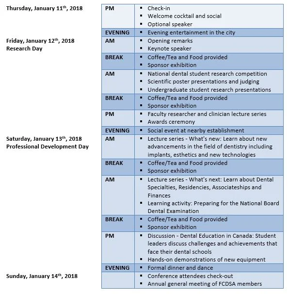*A main priority of the FCDSA council will be to ensure that the minimum number of registrants per school is met, and that their Dean can confirm an approved absence on January 12th 2018 to students attending the conference